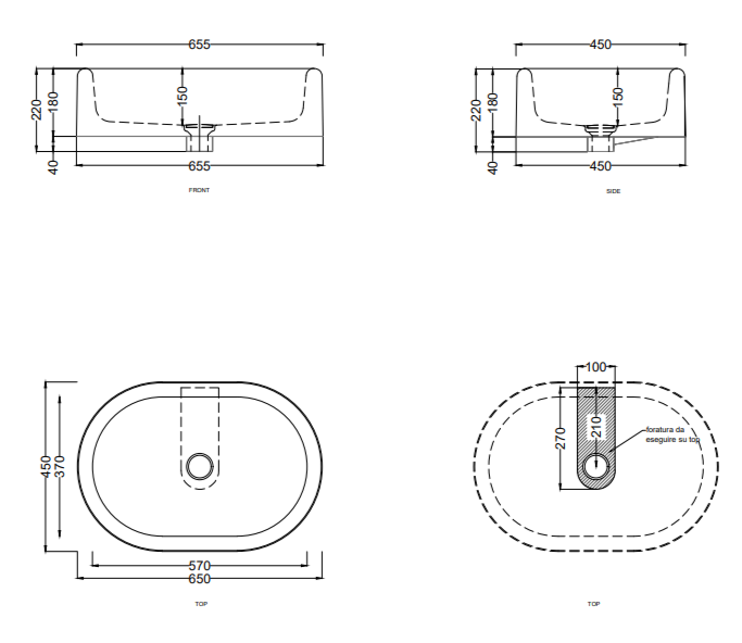 | Тип раковины | Накладная |
