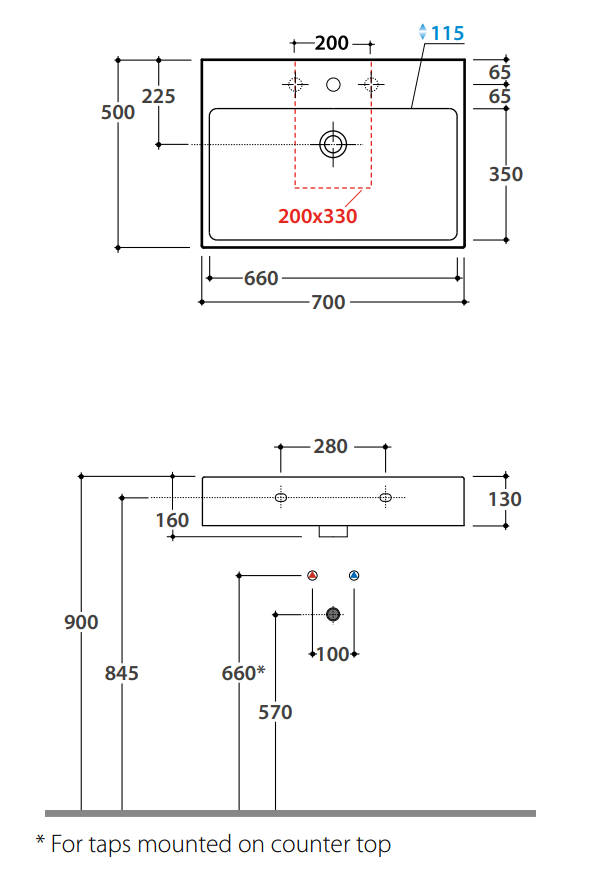 | Отверстия под смеситель | С 3 отверстиями |
