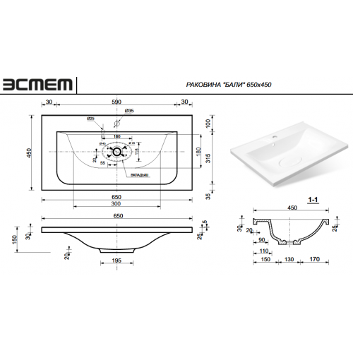 | Форма раковины | Прямоугольная |