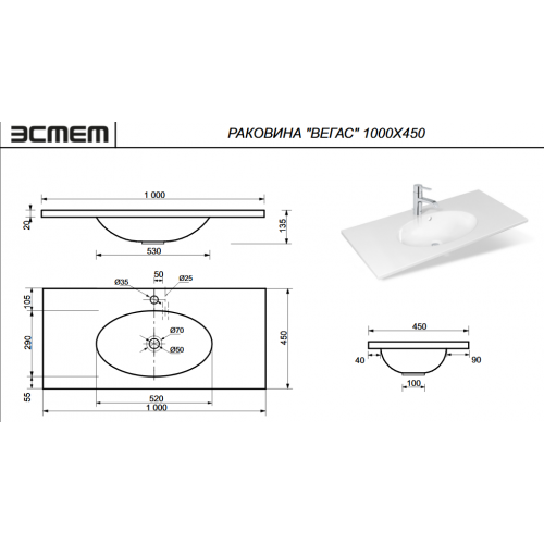 | Форма раковины | Прямоугольная |
