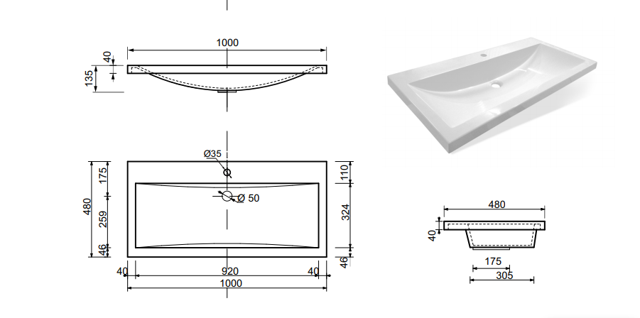 | Форма раковины | Прямоугольная |