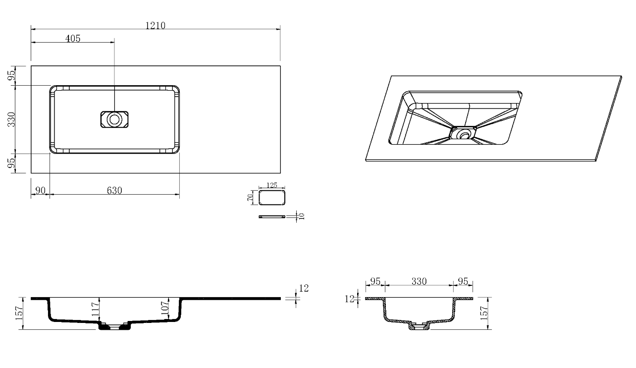 Раковина ассиметричная Armadi Art Quatro 793-120-W-A 121х52 см