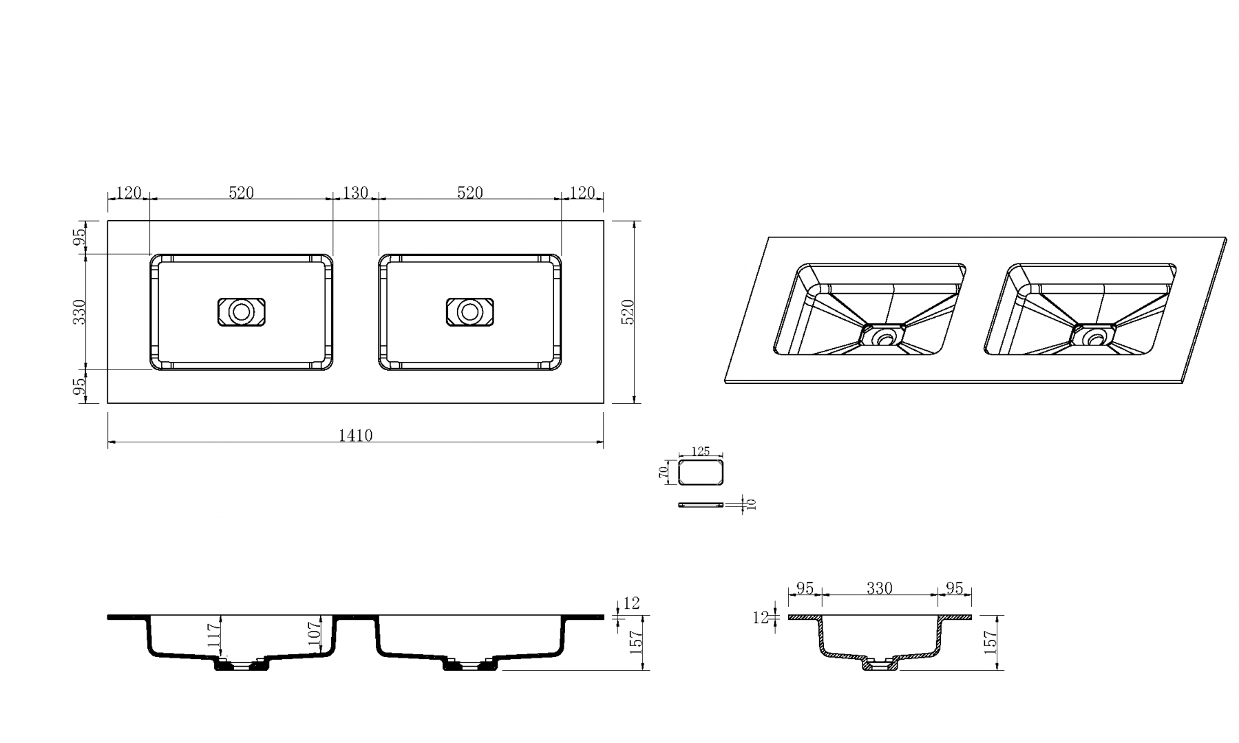 | Отверстия под смеситель | Без отверстий |