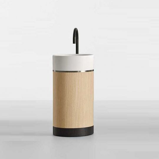 Раковина напольная NOORTH Milldue edition ROMA II 45х45x88 см слив в пол, основ Rovere nero, корп Mezza Fiamma, вставка Platino, раков Bianco opaco