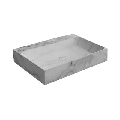 Раковина прямоугольная из камня, навесная, в комплекте с самотечным донным клапаном и фитингом для сифона.