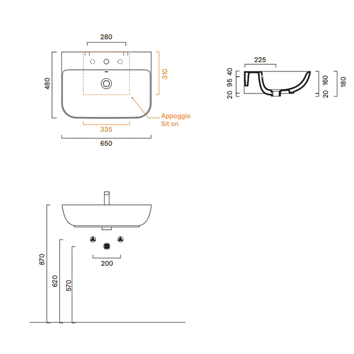 Раковина подвесная Catalano Italy 720651001 65x48 см с 1 отв. под смеситель покрытие Cataglaze+ цвет белый глянцевый