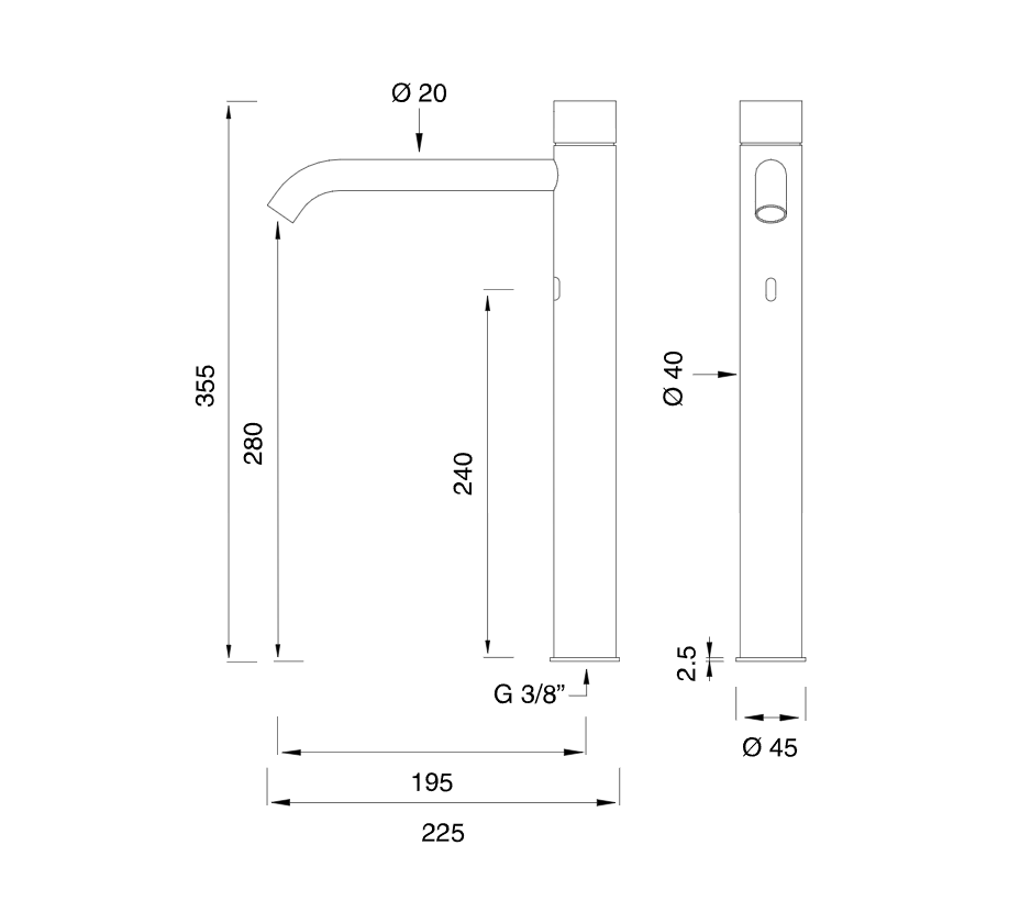 Сенсорный однорычажный смеситель для раковины Cea Design MILO360 MIL018 высота 355мм