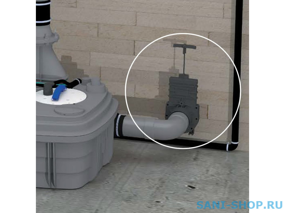 Шиберная задвижка для подключения насосной станции SFA Sanicubic к безнапорной канализации диаметром 100/110 мм. Установка шиберных задвижек позволяет облегчить работы по техническому обслуживанию канализационной станции. Рекомендуется устанавливать шиберные задвижки на всех подводящих трубопроводах. Для установки задвижки на трубу DN 100 необходимо установить переходные муфты. Корпус задвижки изготовлен из ПВХ и ТПЭ, рабочий шток - нержавеющая сталь.