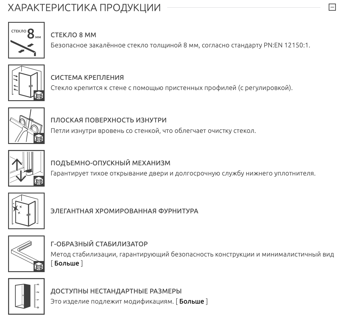 | Толщина стекла | 8 мм |