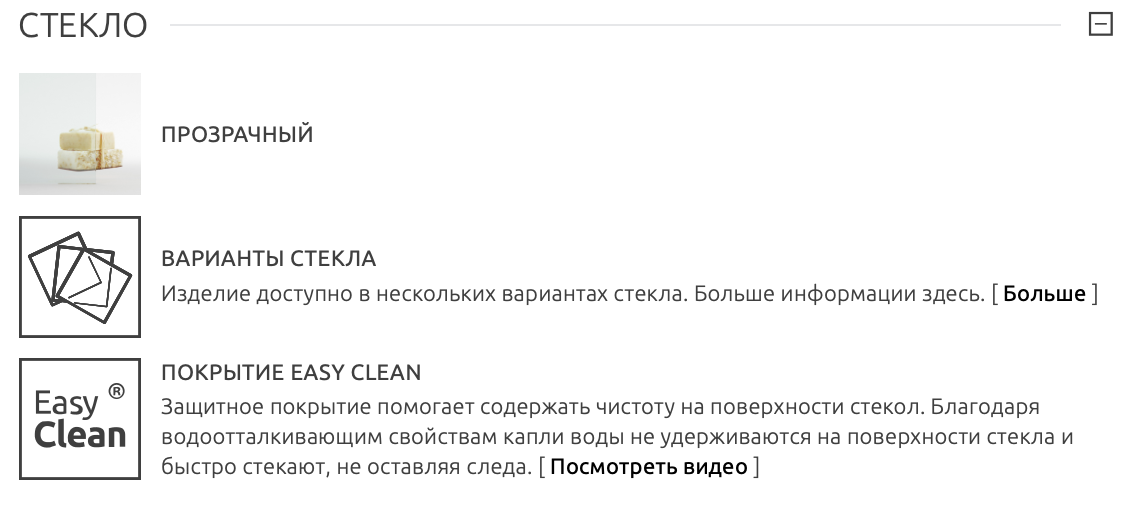 | Стекло | Прозрачное |