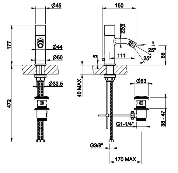 Монтаж На горизонтальную поверхность (раковину, столешницу, борт ванны, биде)
