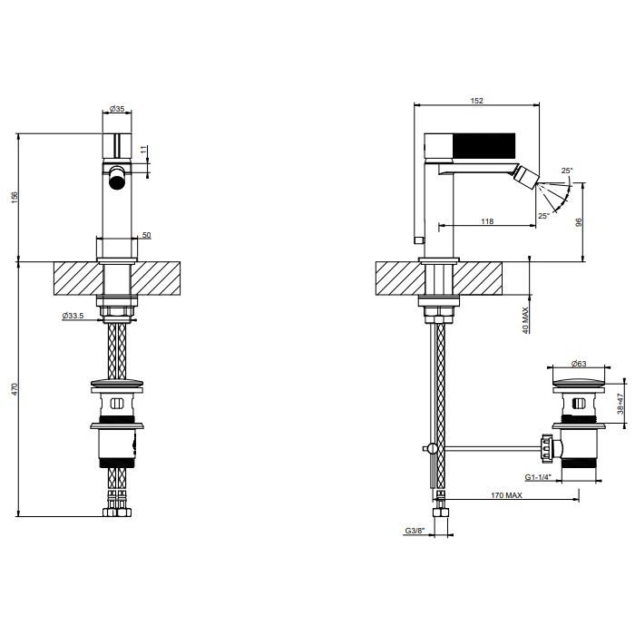 | Монтаж | На горизонтальную поверхность (раковину, столешницу, борт ванны, биде) |