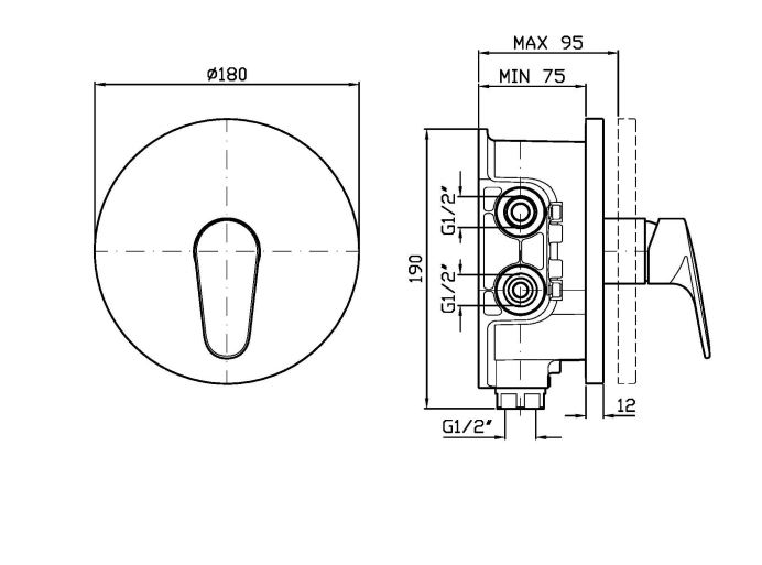 Смеситель для душа встраиваемый однорычажный с переключателем, для универсального встраиваемого корпуса Zetasystem R97800.