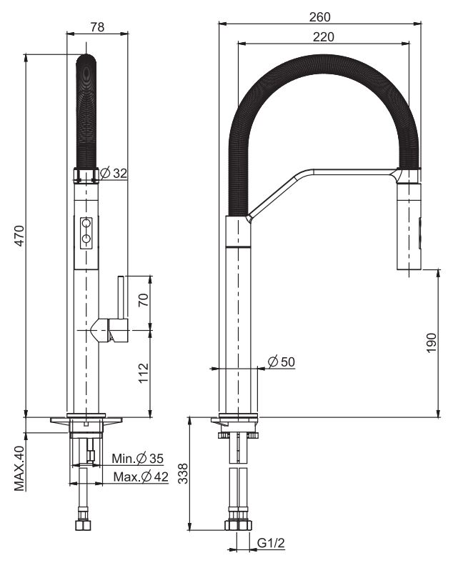 • с двумя гибкими шлангами 370 мм