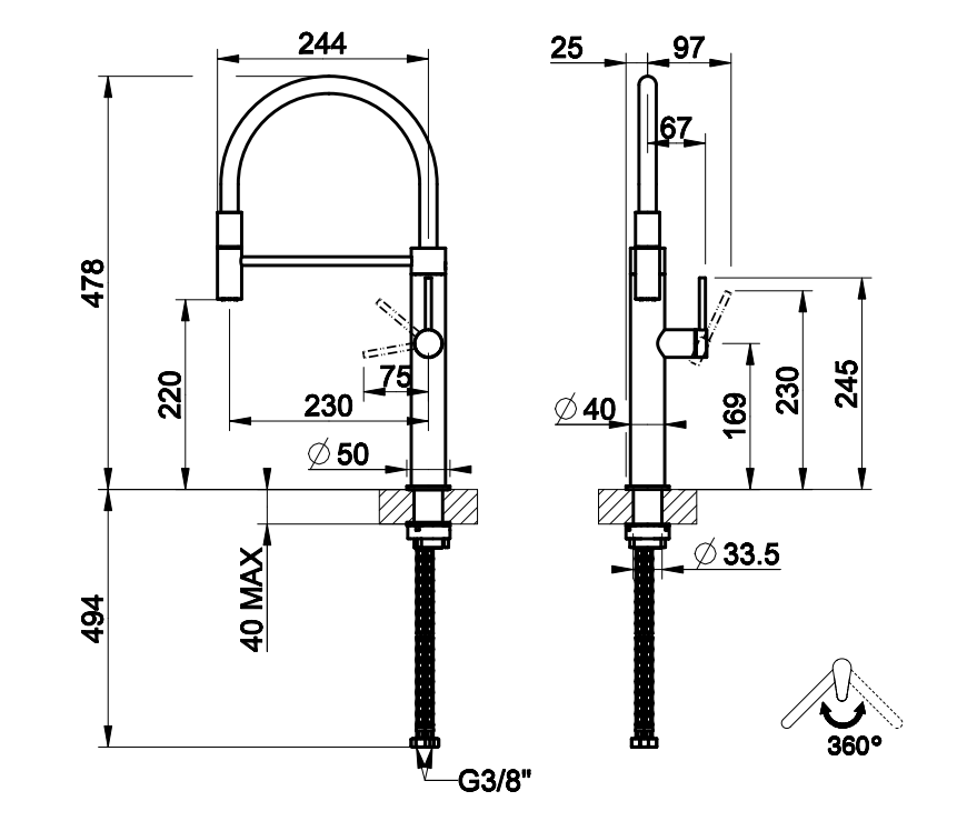 | Назначение смесителя | Для кухонной мойки |