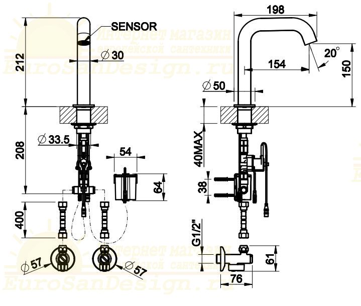 | Монтаж | На горизонтальную поверхность (раковину, столешницу, борт ванны, биде) |