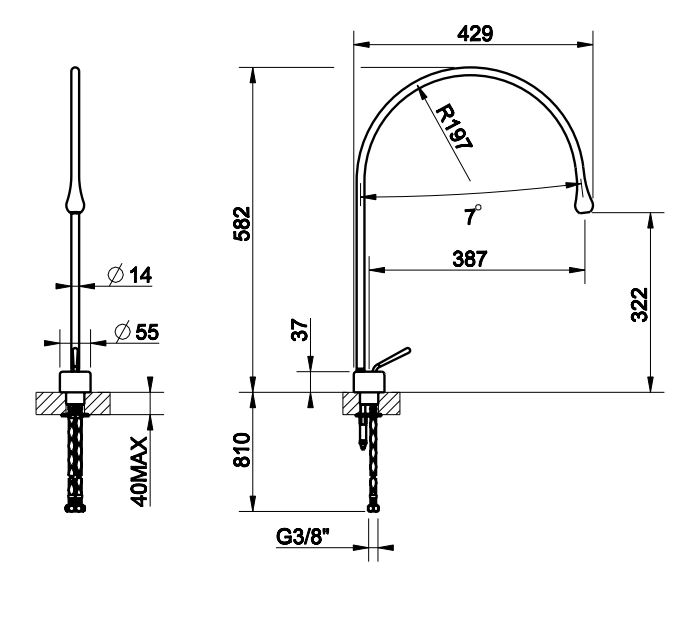 | Монтаж | На горизонтальную поверхность (раковину, столешницу, борт ванны, биде) |