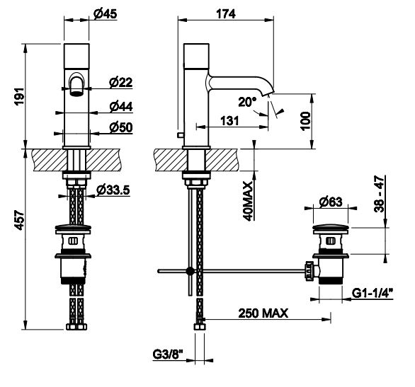 Gessi Habito DIAMANTATO 70601 смеситель для раковины с донным клапаном и соединительными шлангами.