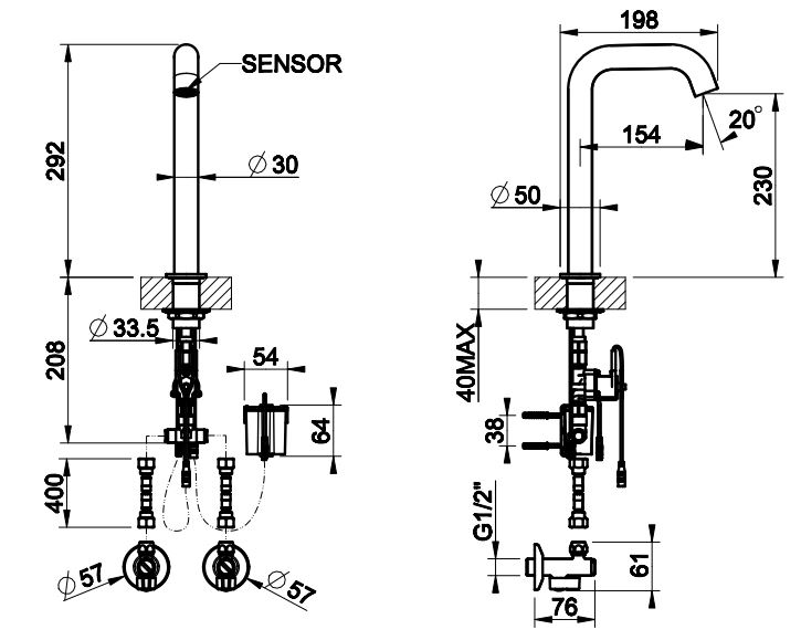 | Монтаж | На горизонтальную поверхность (раковину, столешницу, борт ванны, биде) |