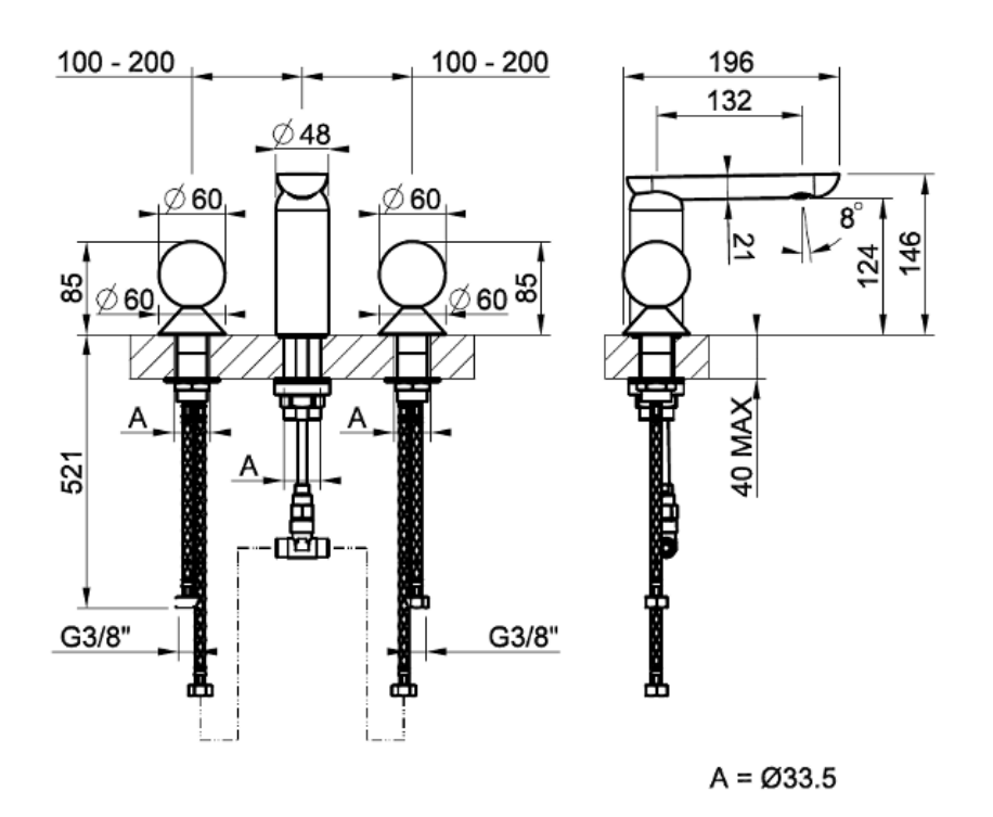 | Отверстия под смеситель | С 3 отверстиями |