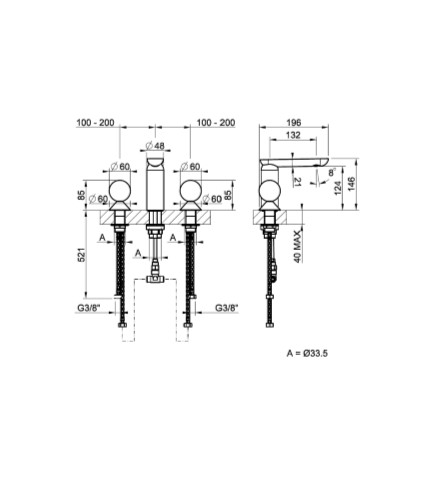 | Отверстия под смеситель | С 3 отверстиями |