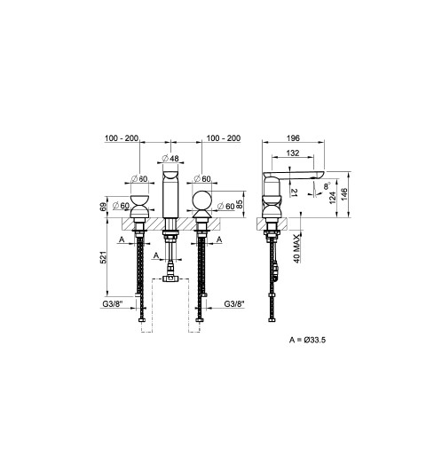 | Отверстия под смеситель | С 3 отверстиями |