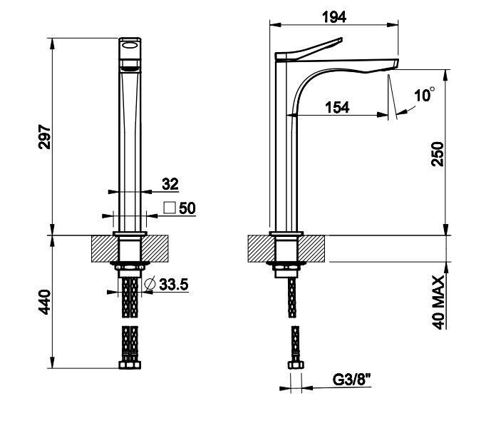 | Монтаж | На горизонтальную поверхность (раковину, столешницу, борт ванны, биде) |