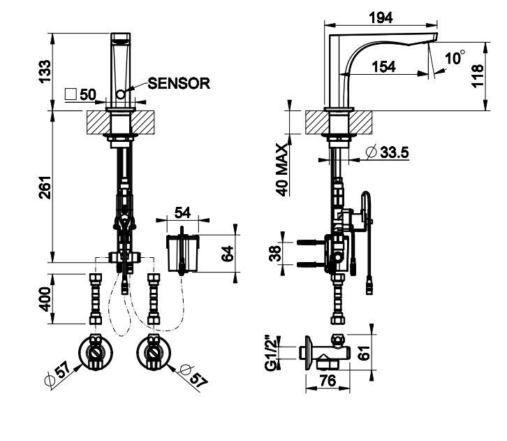 | Монтаж | На горизонтальную поверхность (раковину, столешницу, борт ванны, биде) |