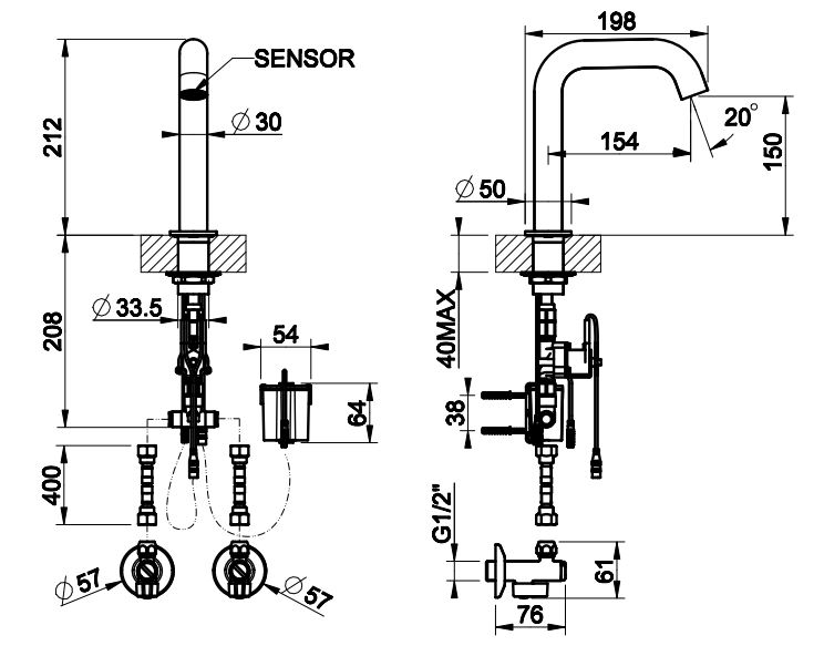 | Монтаж | На горизонтальную поверхность (раковину, столешницу, борт ванны, биде) |
