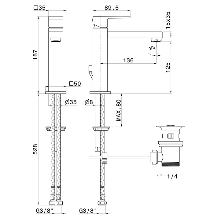 Смеситель для раковины Newform Ergo Q 66416 Xl с донным клапаном