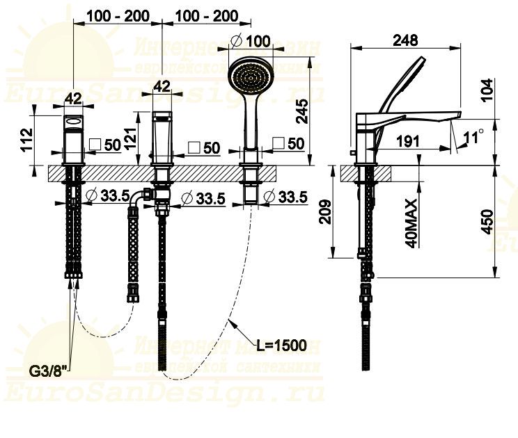 | Отверстия под смеситель | С 3 отверстиями |