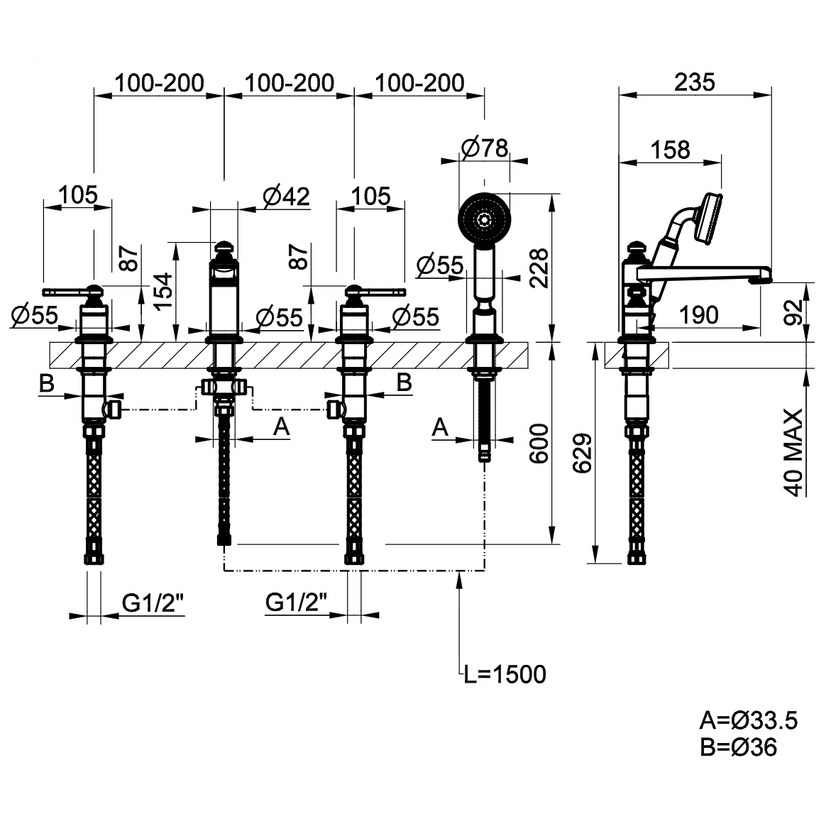 | Отверстия под смеситель | С 4 отверстиями |