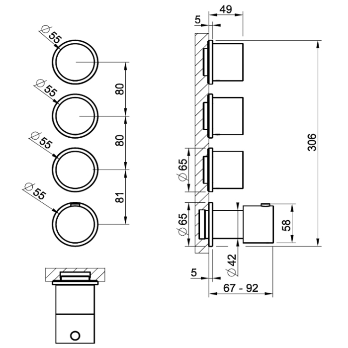 Смеситель термостатический Gessi Origini встраиваемый 66226