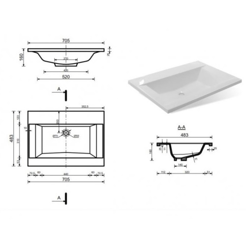 Форма раковины Прямоугольная