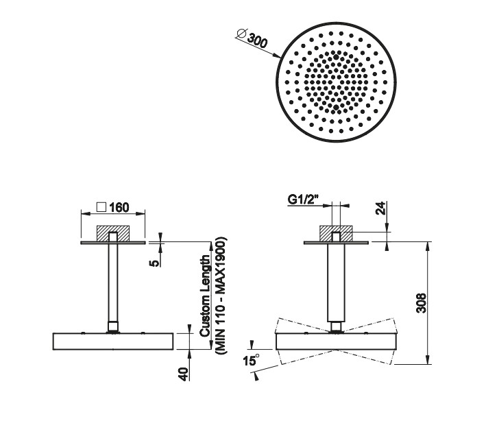 Верхний душ Gessi Incastri 63070 потолочный высота 11-190 см