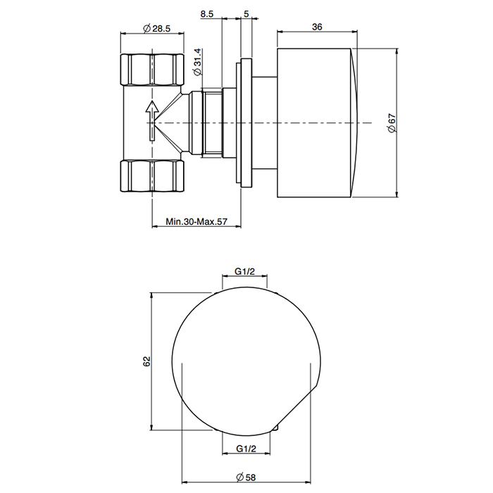 Встроенный смеситель для душа • РУЧКИ ПРОДАЮТСЯ ОТДЕЛЬНО • только внешняя часть • внутренняя часть заказывается отдельно ЧТОБЫ УКОМПЛЕКТОВАТЬ ЭТО ИЗДЕЛИЕ ЗАКАЖИТЕ 1 РУЧКУ S2