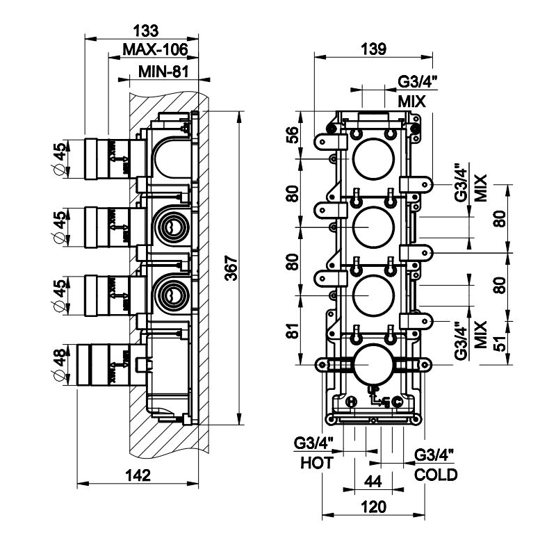 Встраиваемая часть для термостатического смесителя Gessi Origini 09266