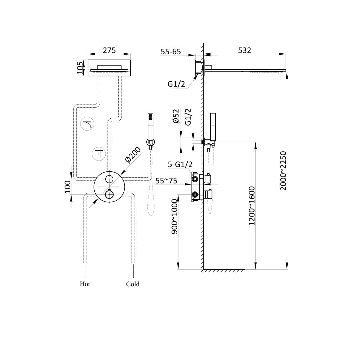 | Форма верхнего душа | Прямоугольный |