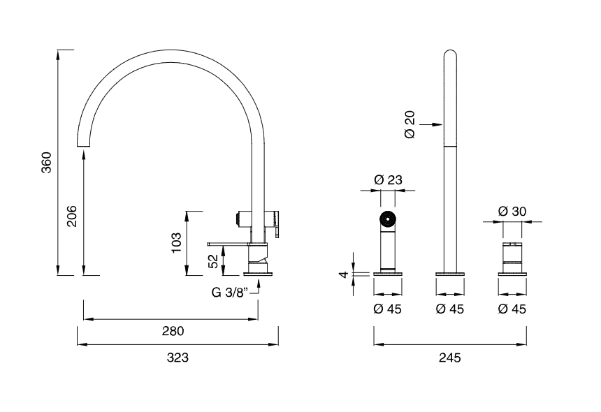 Высокий смеситель для кухни Cea Design INNOVO с поворотным изливом INV96