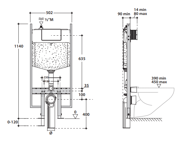 | Назначение инсталляции | Для напольных унитазов |