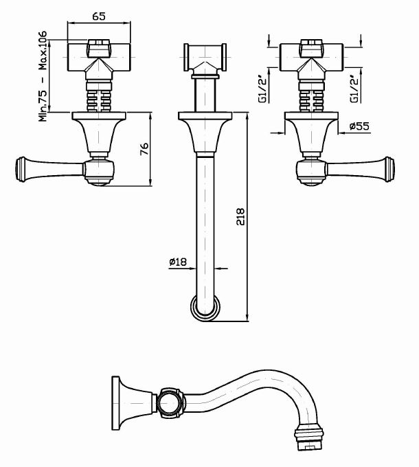 Смеситель для раковины на 3 отверстия встраиваемый с аэратором.