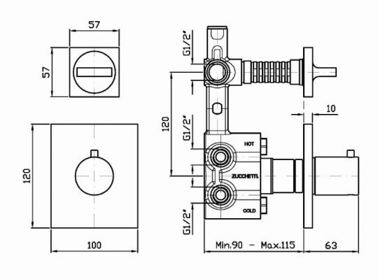 Смеситель для душа термостатический встраиваемый на 1/2 “, с запорным вентилем.