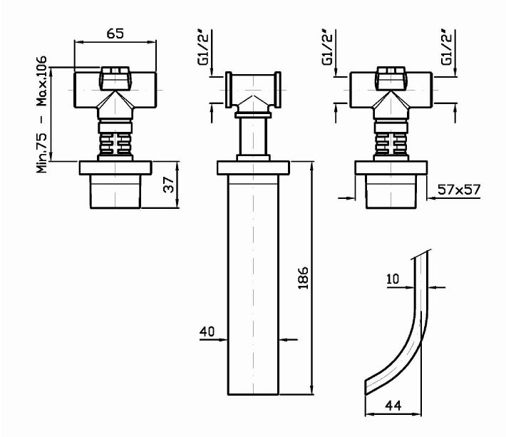 Смеситель для раковины на 3 отверстия встраиваемый.