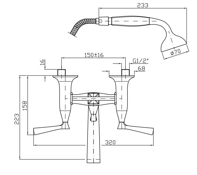 Смеситель для ванны-душа наружный с переключателем, ручным душем и шлангом 1500 мм.