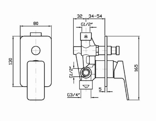 Смеситель для ванны-душа однорычажный встраиваемый с переключателем.
