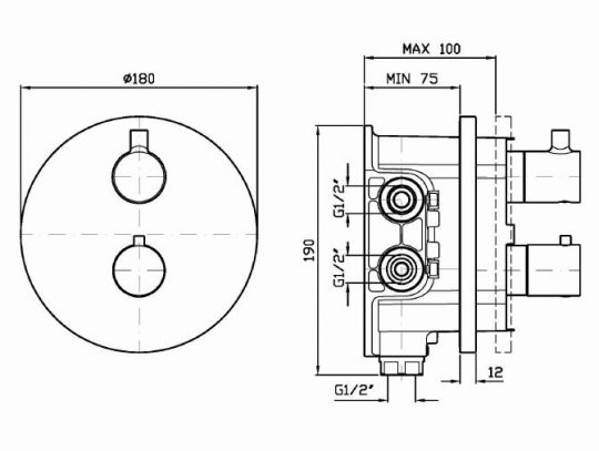Смеситель для душа термостатический встраиваемый на 1/2 “, с запорным вентилем, для универсального блока Zetasystem R97800.