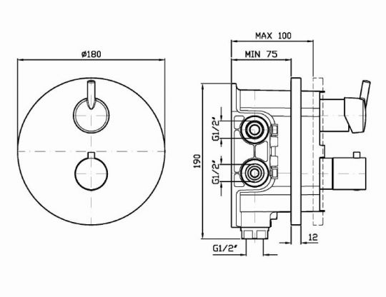 Смеситель для душа термостатический встраиваемый на 1/2 “, с запорным вентилем, для универсального блока Zetasystem R97800.