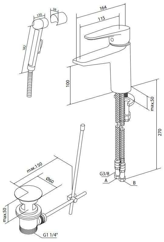 - гибкая подводка G 3/8.