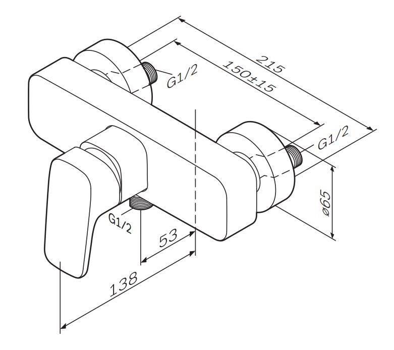 - выход для душа 1/2“ со встроенным обратным клапаном