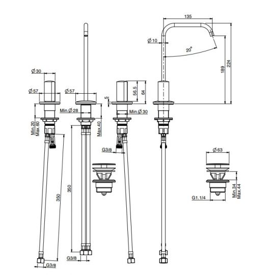 | Монтаж | На горизонтальную поверхность (раковину, столешницу, борт ванны, биде) |
